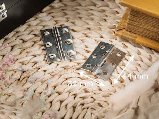 Прямокутна петля для шкатулки - це класичний варіант кріплення верхньої та нижньої частини виробу, який найчастіше використовують майстри. Вона кріпиться на внутрішній стороні за допомогою невеликих шурупів і забезпечує можливість відкриття готової шкатулки під певним кутом.