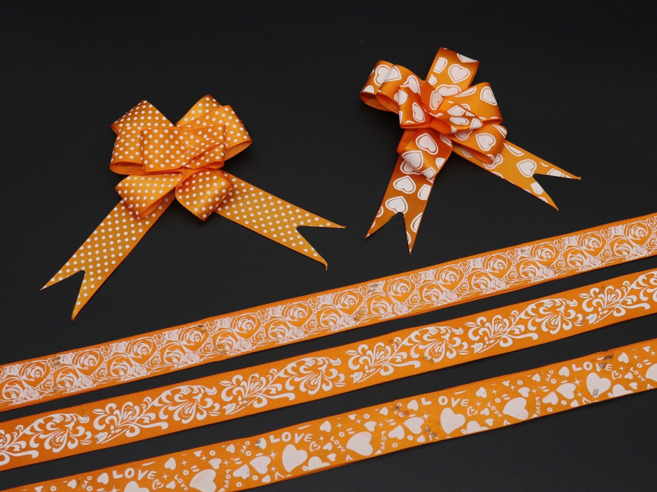 Бант подарунковий стрічковий на затяжках для пакування подарунків і декору Колір помаранч. 5х8 см