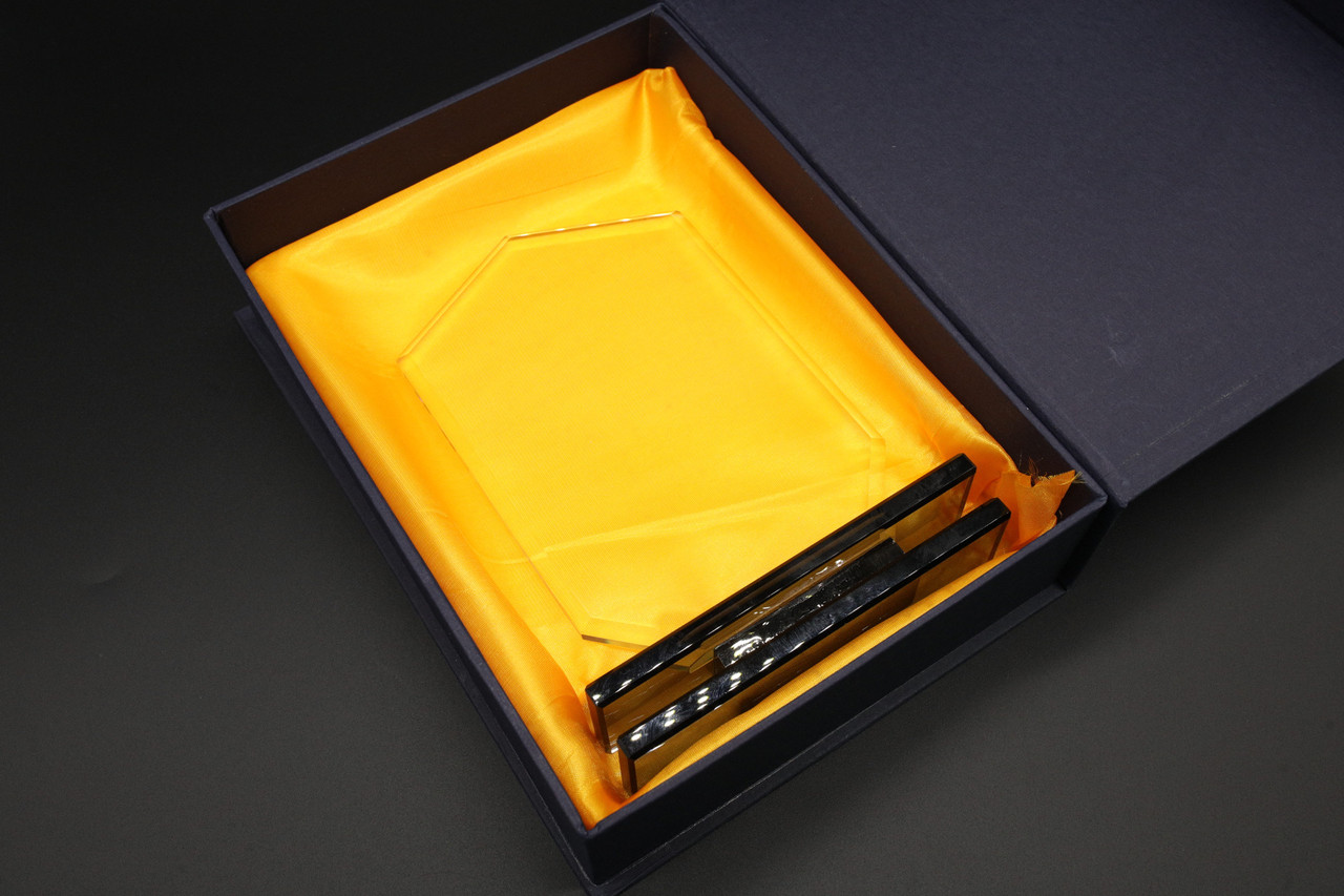 - Виготовляються нагороди зі скла з гравіюванням, що відрізняються особливою красою. Завдяки ефективності огранок і особливих способів обробок звичайне скло виглядає красиво, яскраво і урочисто.