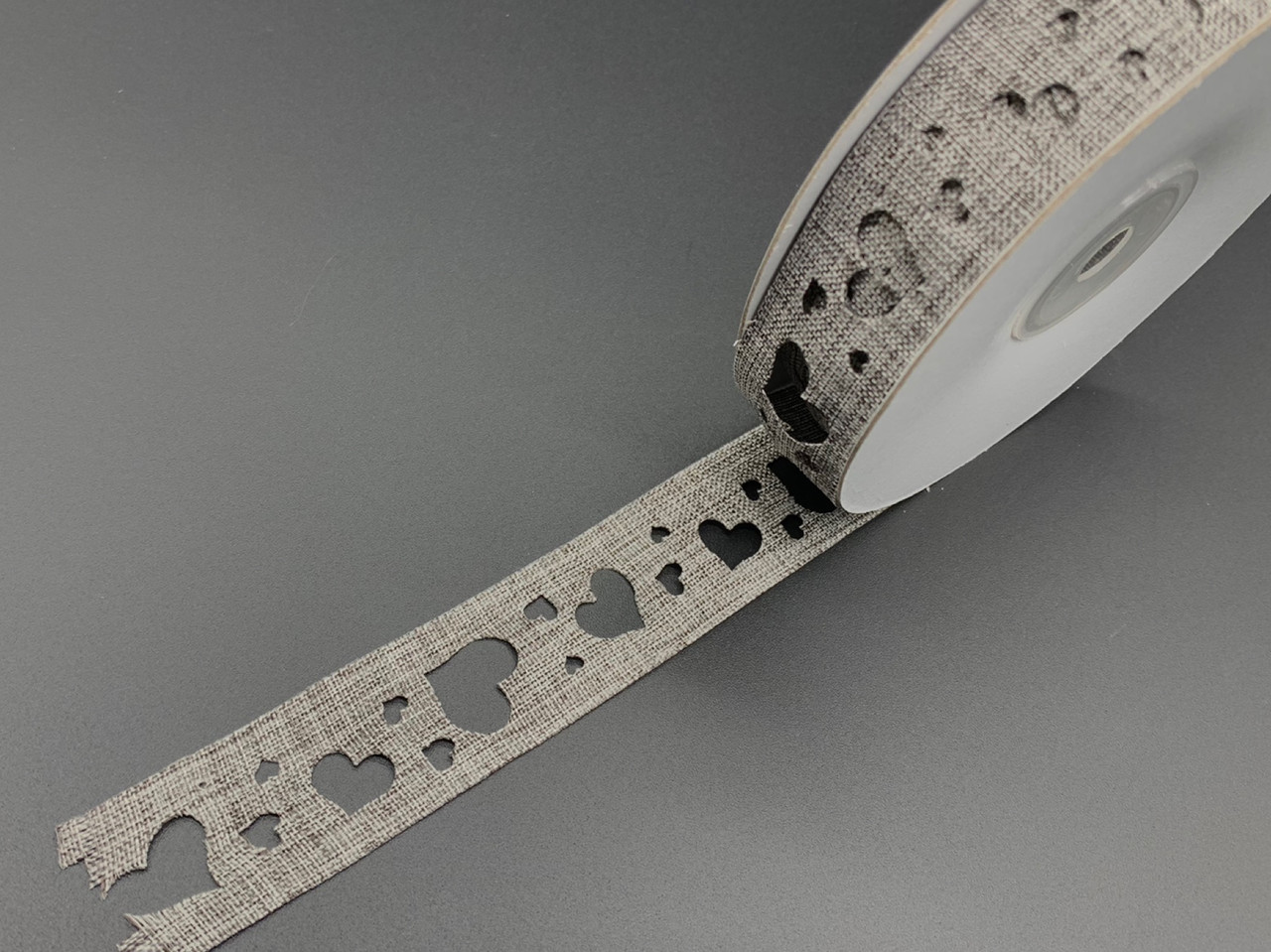 Стрічка декоративна тканинна з візерунком для декупажу Серце. Колір сріблястий. 2,5см. 20м/рул.